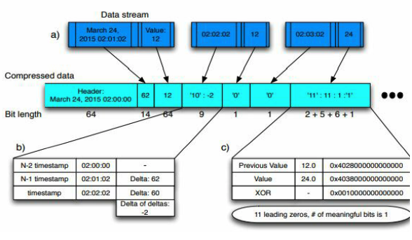 - 그것은 델타 인코딩, 스케일링 및 simple8b run-length 인코딩을 사용하여 압축의 조합을 사용하고, 필요하다면 압축하지 않아도 됩니다.