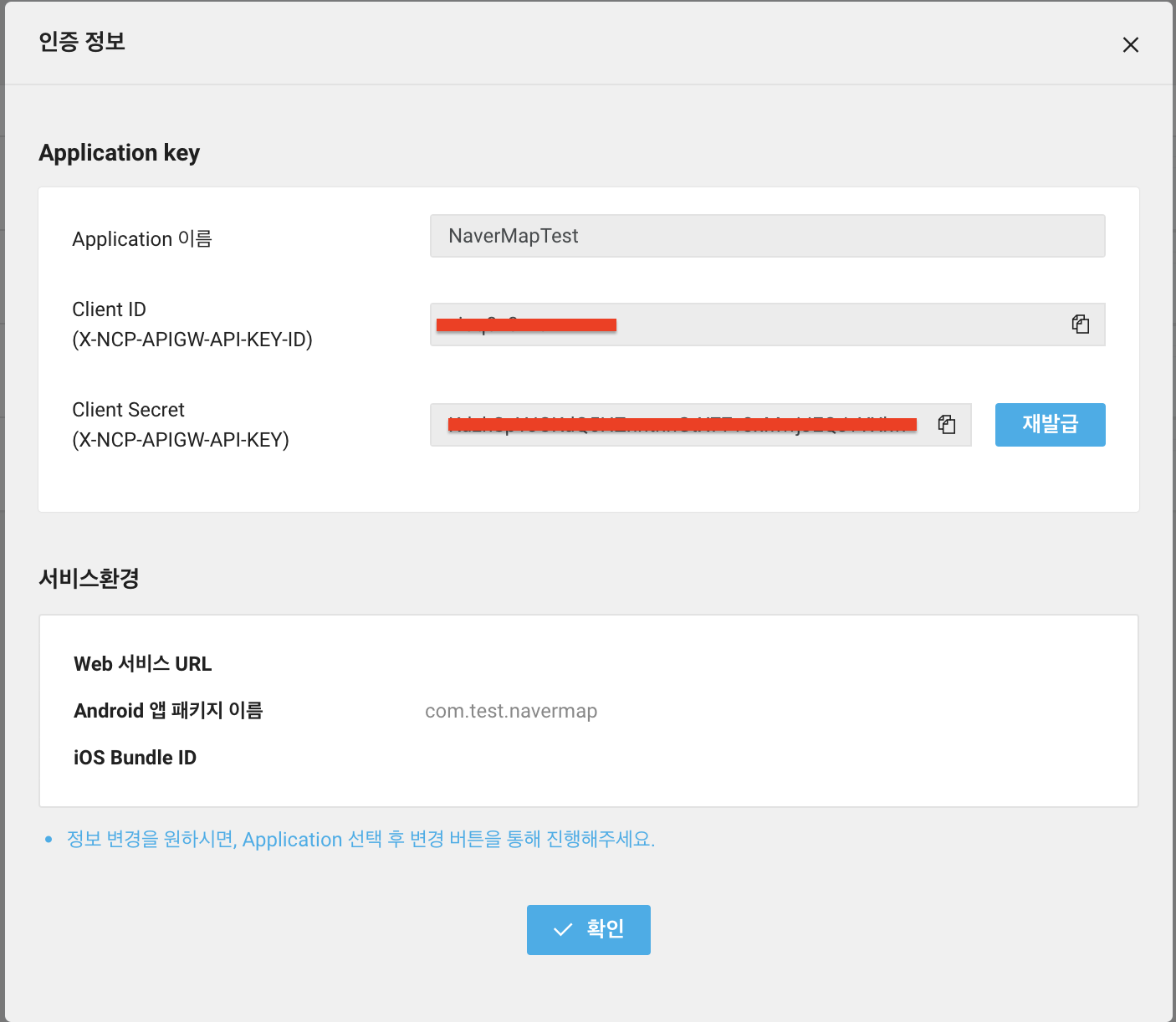 이제 네이버 클라우드 플랫폼의 설정은 완료되었고 이제 안드로이드 스튜디오에서 발급된 키를 등록함으로써 모든 준비는 끝이 납니다.